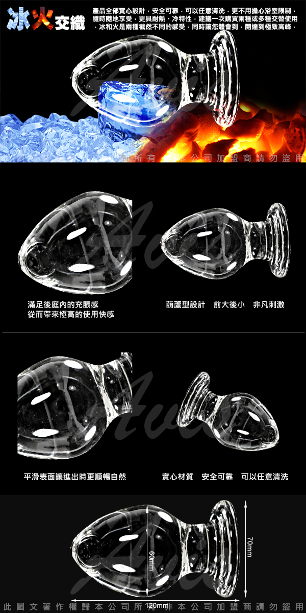 .商品名稱:GLASS 重量級 白肌妖精 肛塞 玻璃水晶後庭冰火棒 Anus 32*1