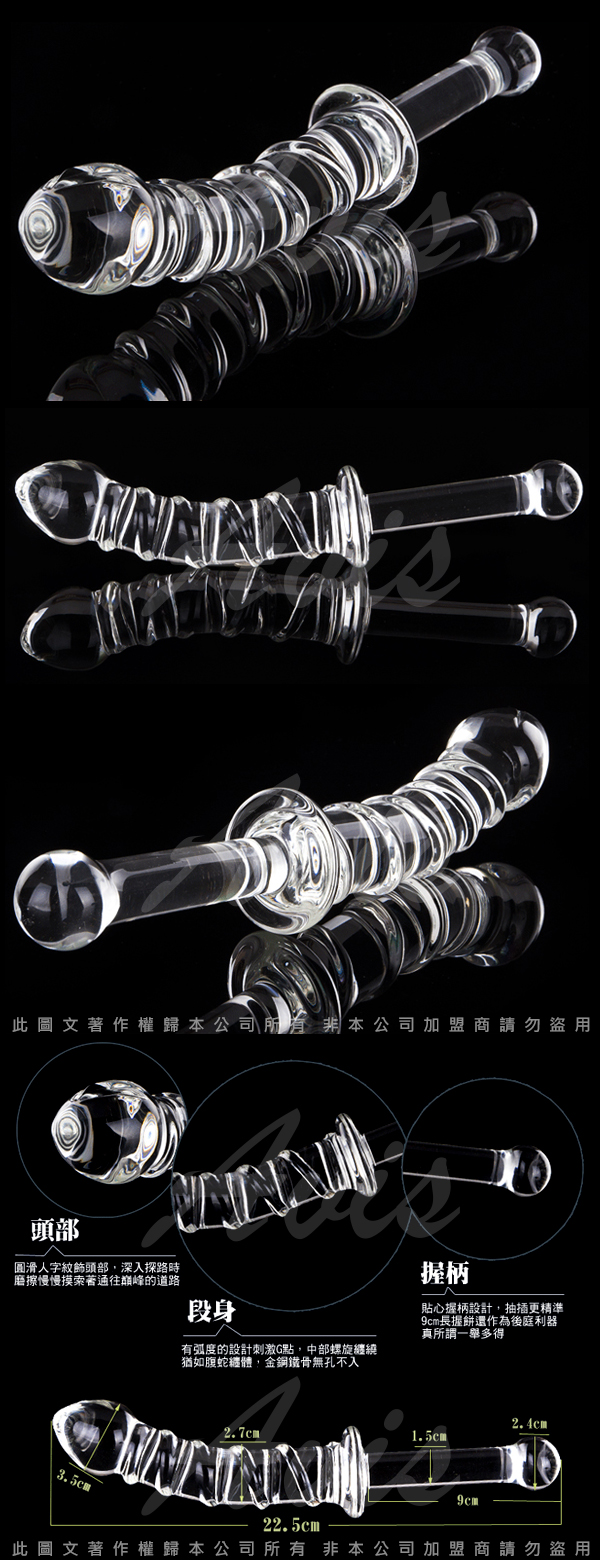 .商品名稱:GLASS 溫柔劍客 螺紋狀 玻璃水晶後庭冰火棒 Anus 40*1