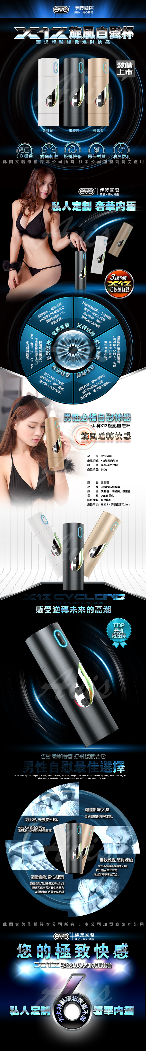 EVO 獵鷹計畫X12 5X3頻 LED燈光 電動旋轉 科技感 旋風自慰杯 USB充電款 酷炫黑
