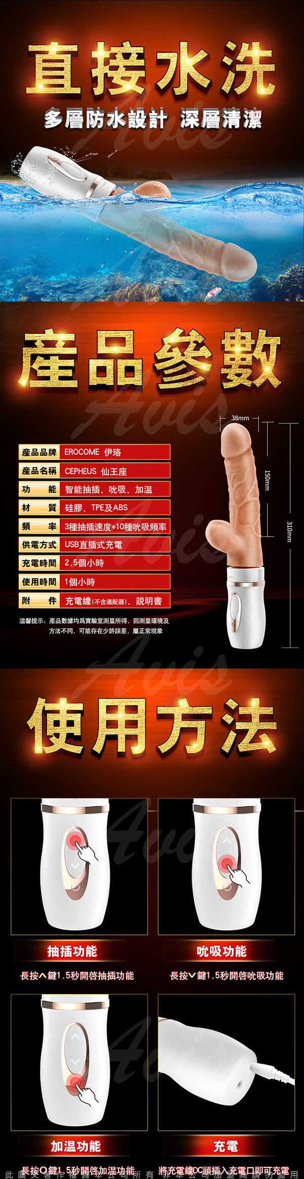 .商品名稱:EROCOME伊珞 仙王座CEPHEUS 3x10段伸縮吸吮變頻全自動仿真加溫按摩棒