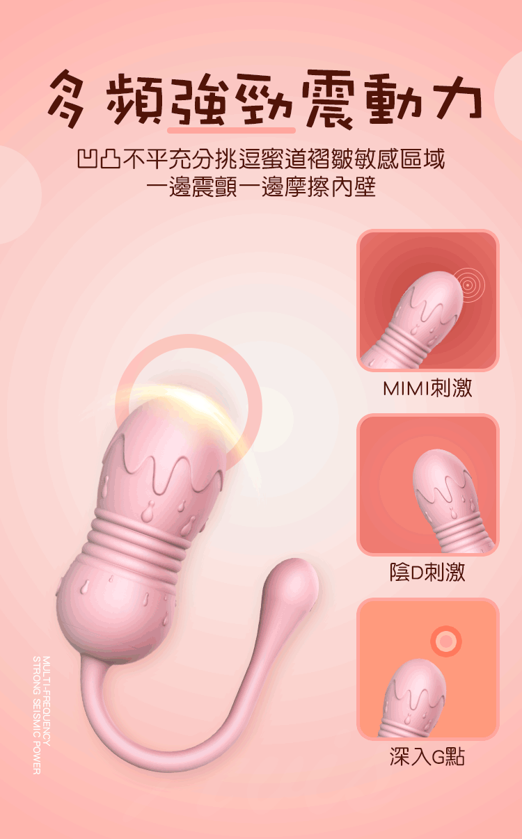 蜜愛冰淇淋無線遙控跳蛋擁有8段伸縮變頻輕鬆自邸敏感部位,刺激內外同時夾擊一同爽。無線遙控讓您一鍵在手,即使在體內也可達遙控,從此她的激情逃不出你的掌心。震動同時還全自動伸縮動力強勁,一次強有力的撞擊勝過多次慢吞吞的摩擦。此款輕鬆好入體,比手指略大一些入體毫無壓力,不撐大仙女們的嬌嫩蜜穴喔~~