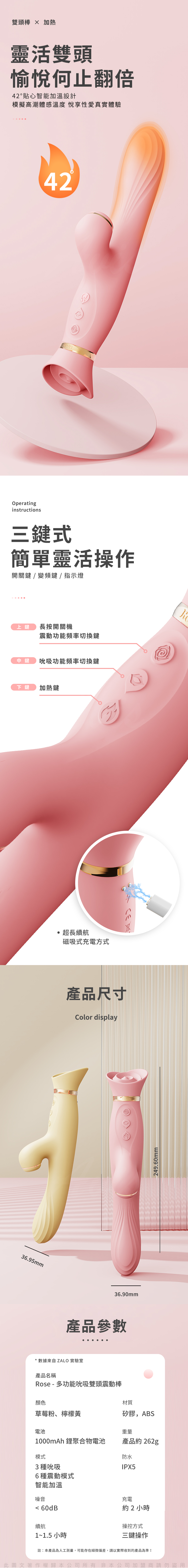 產品名稱:Zalo Rose Vibrator 加溫吸吮按摩棒-檸檬黃