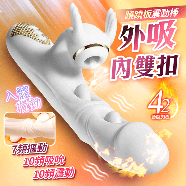 謎姬|逗豆龍 吸吮震動加溫按摩棒|月牙黃